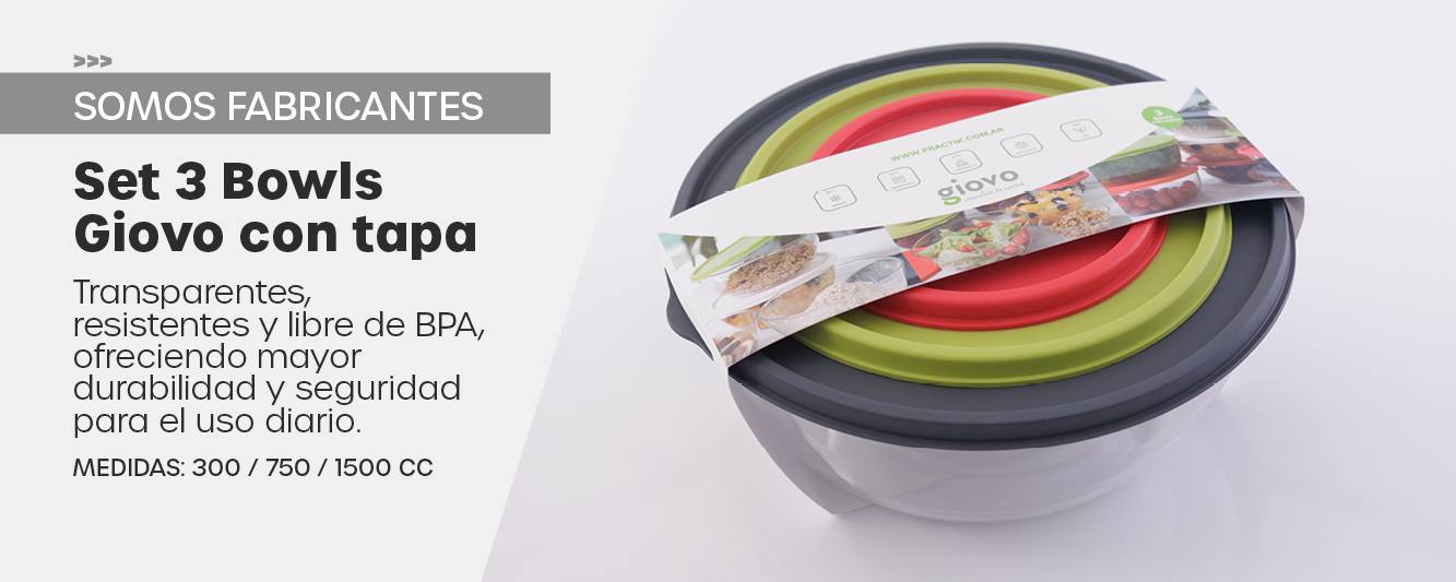 Set 3 Bowls Giovo con tapa – 300 / 750 / 1500 cc